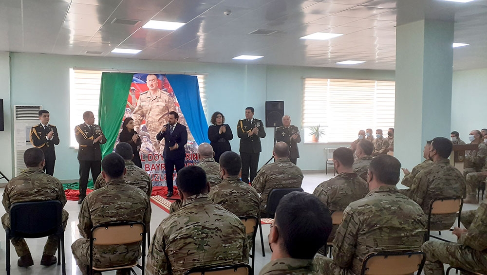 Respublikanın Xalq artisti Samir Cəfərov və Həzi Aslanov adına Ordu İdeoloji və Mədəniyyət Mərkəzinin yaradıcı heyəti tərəfindən Müzəffər Ali Baş Komandana sədaqəti, şəhidlərimizin xatirəsinə ehtiramı, ordu-xalq birliyini və Azərbaycan əsgərinin şücaət və qəhrəmanlıqlarını tərənnüm edən vətənpərvərlik mahnılarının və şeirlərinin ifası ilə tədbirə yekun vurulub.