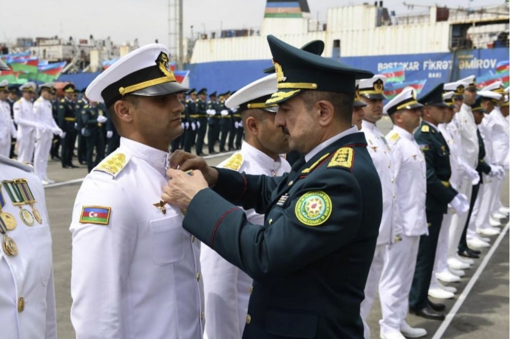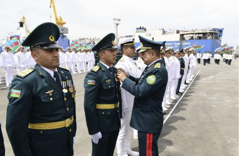 Mərasimdə "Azərbaycan Xəzər Dəniz Gəmiçiliyi" Qapalı Səhmdar Cəmiyyətinin sədri Rauf Vəliyevin rəhbərliyi altında heyət iştirak edib, cəmiyyətin 4 nəfər əməkdaşı “Hərbi əməkdaşlıq sahəsində xidmətlərə görə” medalı ilə təltif olunublar.
