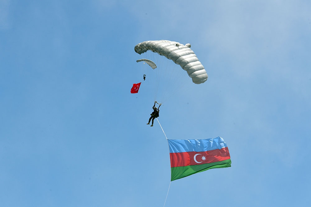 Paraşüt hazırlığı üzrə keçirilən növbəti məşqlərdə də şəxsi heyət tərəfindən müxtəlif tapşırıqlar icra olunub. Üçrəngli Azərbaycan bayrağı Konya səmasında dağlandırılıb.
