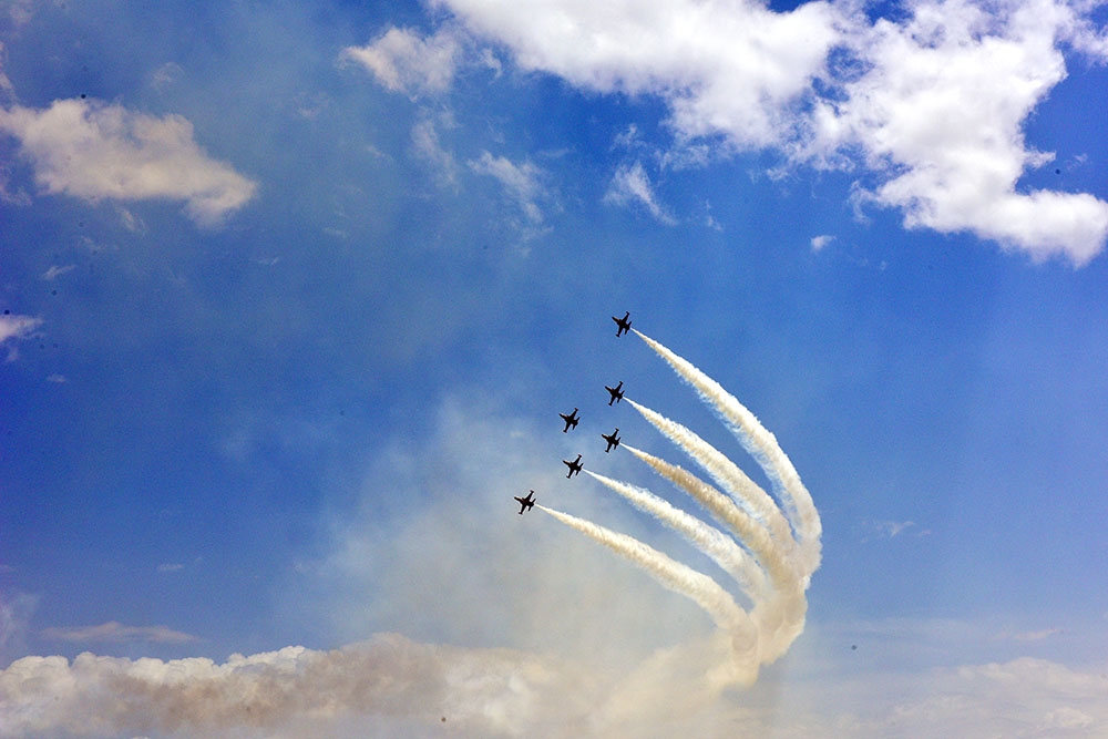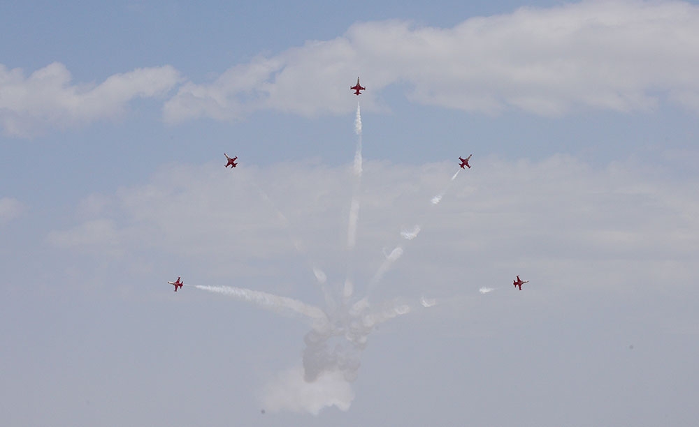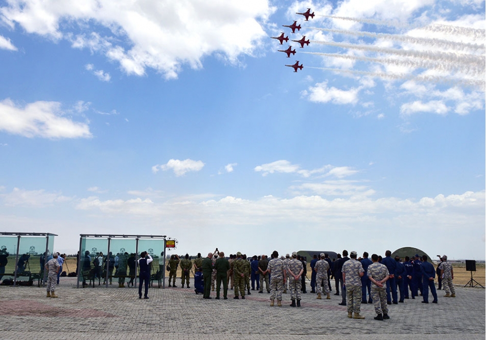 "İki sahil" xəbər verir ki, əvvəlcə qonaqlar Türkiyə Hərbi Hava Qüvvələrinin “Solo Türk” və “Türk Ulduzları” aviaqrupuna daxil olan F-5 və F-16 tipli təyyarələrin nümunəvi uçuşlarını izləyib.