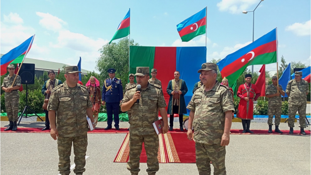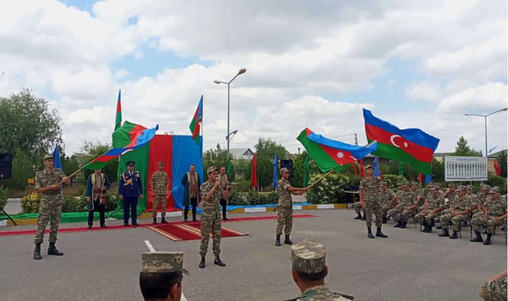 Tədbir başlamazdan öncə hərbi hissənin həyətində şəhidlərin xatirəsinə inşa edilmiş abidə ziyarət olunub, Birinci və İkinci Qarabağ müharibəsinin şəhidləri ehtiramla yad edilib. “Qələbə marşı”nın sədaları altında Müzəffər Ali Baş Komandan İlham Əliyevin qətiyyətlə bəyan etdiyi kəlamlar səsləndirilib: “Müharibə onların yadından çıxmasın. Unutmasınlar ki, dəmir yumruq yerindədir... Onlara elə cavab verməliyik ki, bunu öz tarixi yaddaşlarında əbədi saxlasınlar, bu, onların yaddaşından heç vaxt silinməsin və silinməyəcək. Bu gün orada baş qaldıran bəzi revanşist qüvvələr də bilməlidir, dəmir yumruq yerindədir!”.