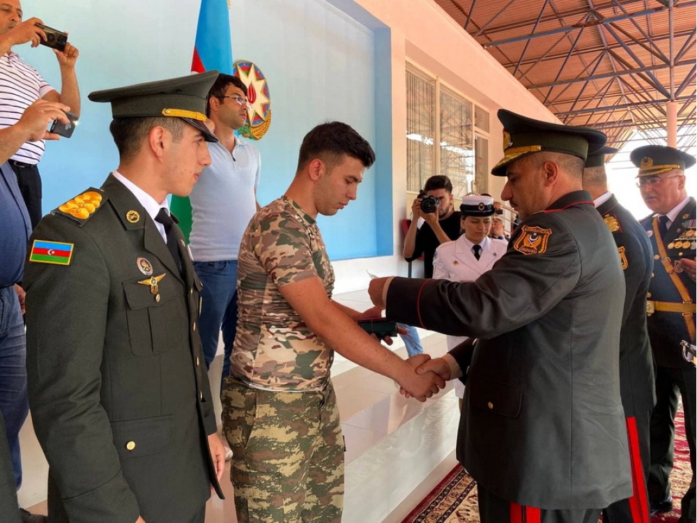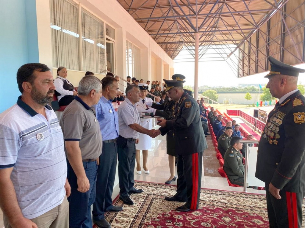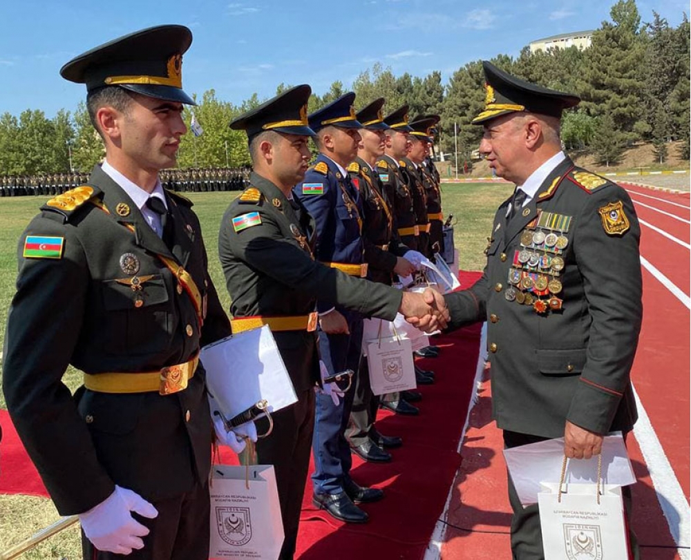 Təntənəli mərasimdə Vətən müharibəsində iştirak etmiş zabit və kursantlara, eləcə də şəhid hərbi qulluqçuların ailə üzvlərinə orden və medallar təqdim olunub.