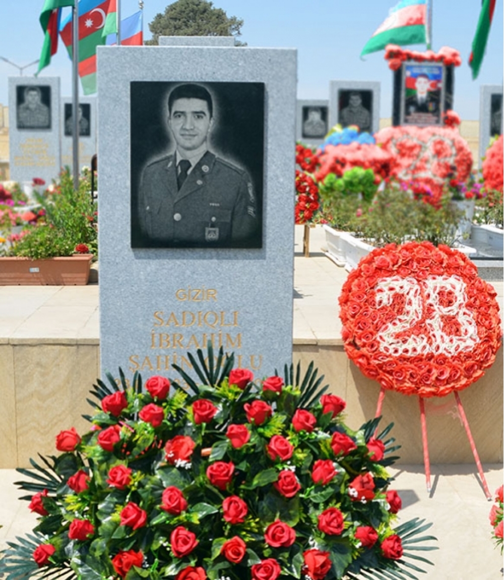 Azərbaycan Respublikası Prezidentinin Sərəncamı ilə “Qarabağ” ordeni və bir neçə döyüş medalı ilə təltif olunmuş şəhid gizir Sadıqlı İbrahim Şahin oğlunun ad günündə Müdafiə Nazirliyinin bir qrup hərbi qulluqçusu, şəhidin ailə üzvləri, dostları, ictimaiyyət nümayəndələri Şəhidlər xiyabanına gələrək onun məzarını ziyarət edib, önünə çələng və qərənfillər düzüblər.
