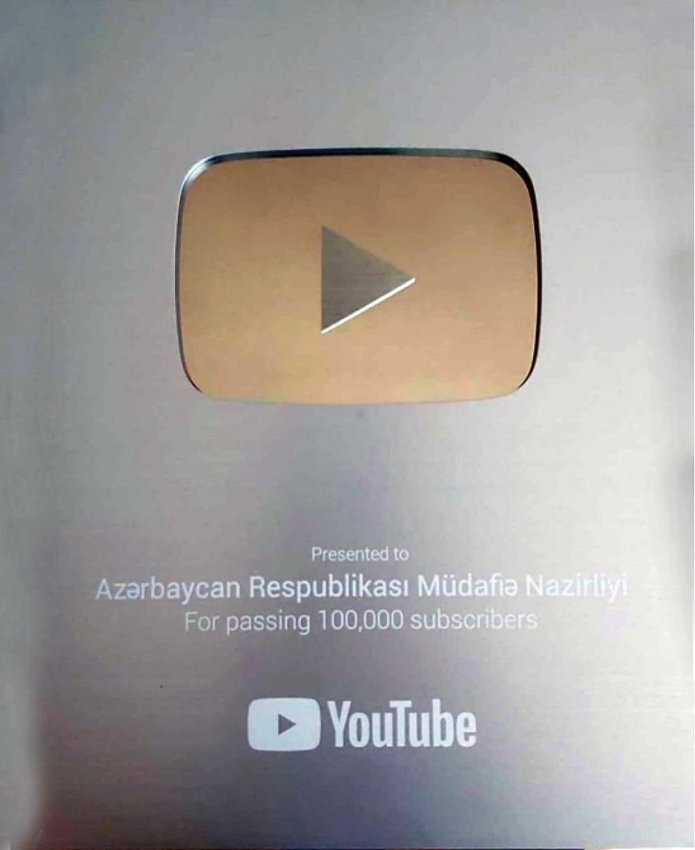 “İki sahil” xəbər verir ki, “YouTube” şirkəti tərəfindən təsis edilmiş “Gümüş mükafat” Müdafiə Nazirliyinin rəsmi “YouTube” kanalını idarə edən heyətə təqdim olunub.