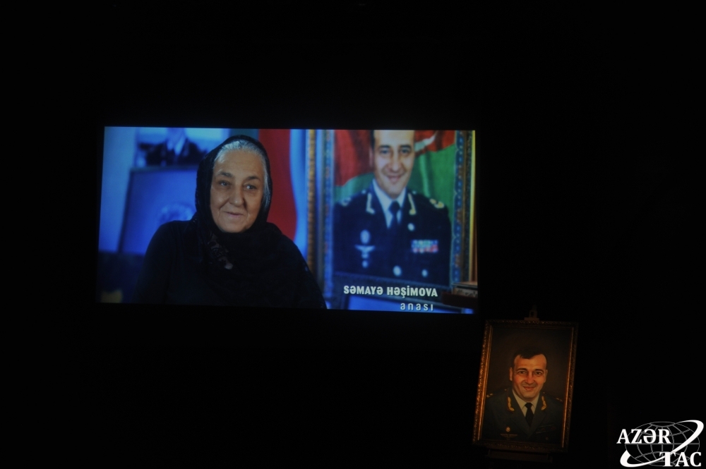 Sonra Polad Həşimovun anası Səmayə xanım çıxış edib. Poladın xarakterindən bəhs edən şəhidin anası bildirib: “Polad sözündən dönməyən mərhəmətli, iradəli, hərdən öz dünyasına qapılan bir uşaq idi. Foto çəkməyi sevərdi. Kənd uşaqların səkillərini çəkərdi. Çox cəsarətli idi, hər şeyi öyrənməyə çalışırdı. İdmanla məşğul olaraq, özü də bilmədən özünü bu həyata hazırlayırdı. Hərbi hissədə əsgərləri onu mənim komandirim deyə çağırardı”.