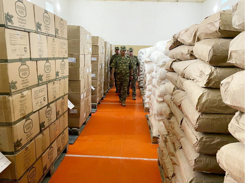 Bundan başqa Müdafiə nazirinə işğaldan azad edilmiş ərazilərimizdə ərzaq və əşya əmlakı anbarlarının tikintisinin davam etdirilməsi barədə məruzə edilib.