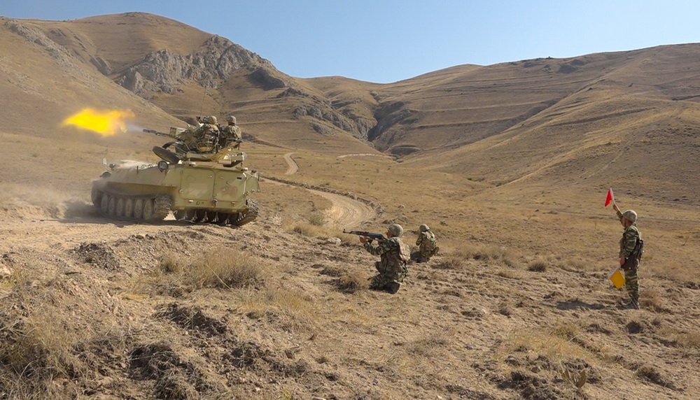 Qurğu heyətlərinin yerüstü hədəflərə praktiki atışları ilə təlimlər davam edir.