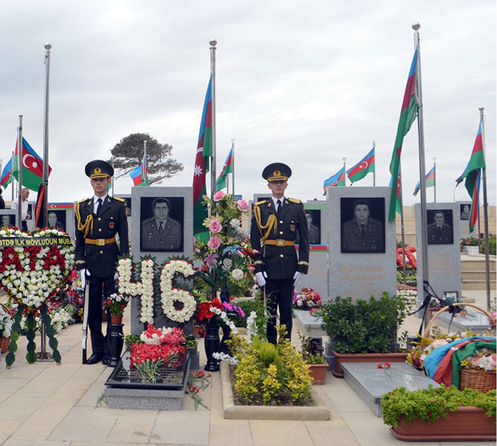 Xatirə mərasimi hərbi orkestrin ifa etdiyi “Qələbə Marşı”nın sədaları başa çatıb.