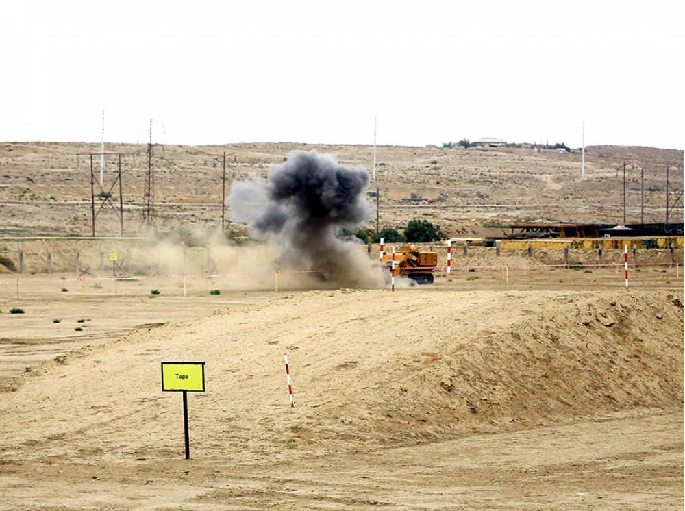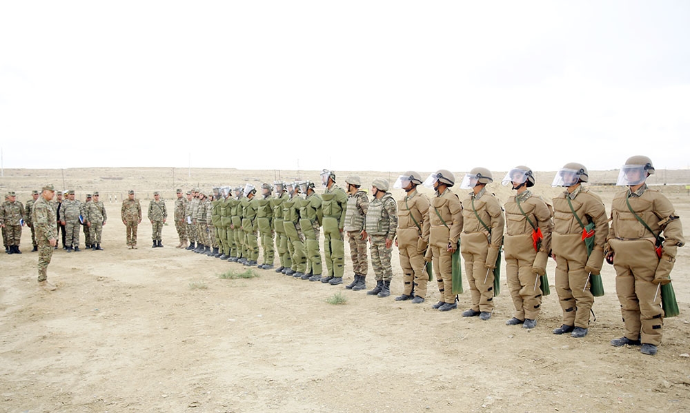 Sonra hərbi hissənin təlim poliqonunda mühəndis-istehkamçılar təlim-məşq nümunələri nümayiş etdirib.