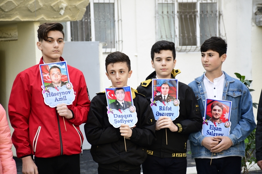 Daha sonra 264 nömrəli məktəb-liseyin şagirdlərinin ifasında Vətənə, ordumuza, şəhidlərimizin xatirəsinə həsr olunan şeirlər səsləndirilib, ədəbi-bədii kompozisiya nümayiş etdirilib.