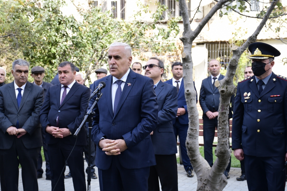 Çıxış edən Əməkdar artist, bədii qiraətçi Azad Şükürov şəhidlərin adlarının əbədiləşdirilməsi məqsədilə görülən işlərə, keçirilən tədbirlərə, anım mərasimlərinə görə öz adından və mərasim iştirakçıları adından Xətai Rayon İcra Hakimiyyətinin, eləcə də YAP Xətai rayon təşkilatının rəhbərliyinə minnətdarlığını bildirib: “Hər dəfə şəhidlərimizin xatirə lövhələrinin açılışında iştirak edəndə çox qürur hissi keçirirəm və şad oluram. Ən azından ona görə ki, Vətənimiz, qeyrətimiz, namusumuz yolunda vuruşub qan tökən, gözünü qırpmadan canından keçən şəhidlərimizə sayğı və sonsuz ehtiram göstərərək anım tədbirlərinin keçirilməsi, xatirə lövhələrinin, bulaqlarının açılması onların da əziz ruhunu şad edir. Xalqımızın igid övladları “Vətən”, “xalq” deyərək ən şirin nemət olan canını Vətən uğrunda qurban verdilər. Bu gün üzümüz ağ, başımız ucadır. İndi biz Vətən torpağına ayağımızı möhkəm basırıq. Şəhidlərimizin və qazilərimizin hər birinə bir ömür borcluyuq. Qoy Vətənimizin bütün övladları bu abidəni gördükcə, parkı ziyarət etdikcə hiss etsinlər ki, torpaq uğrunda canlarını fəda edənləri xalqımız necə hörmətli, əziz və müqəddəs tutur.”