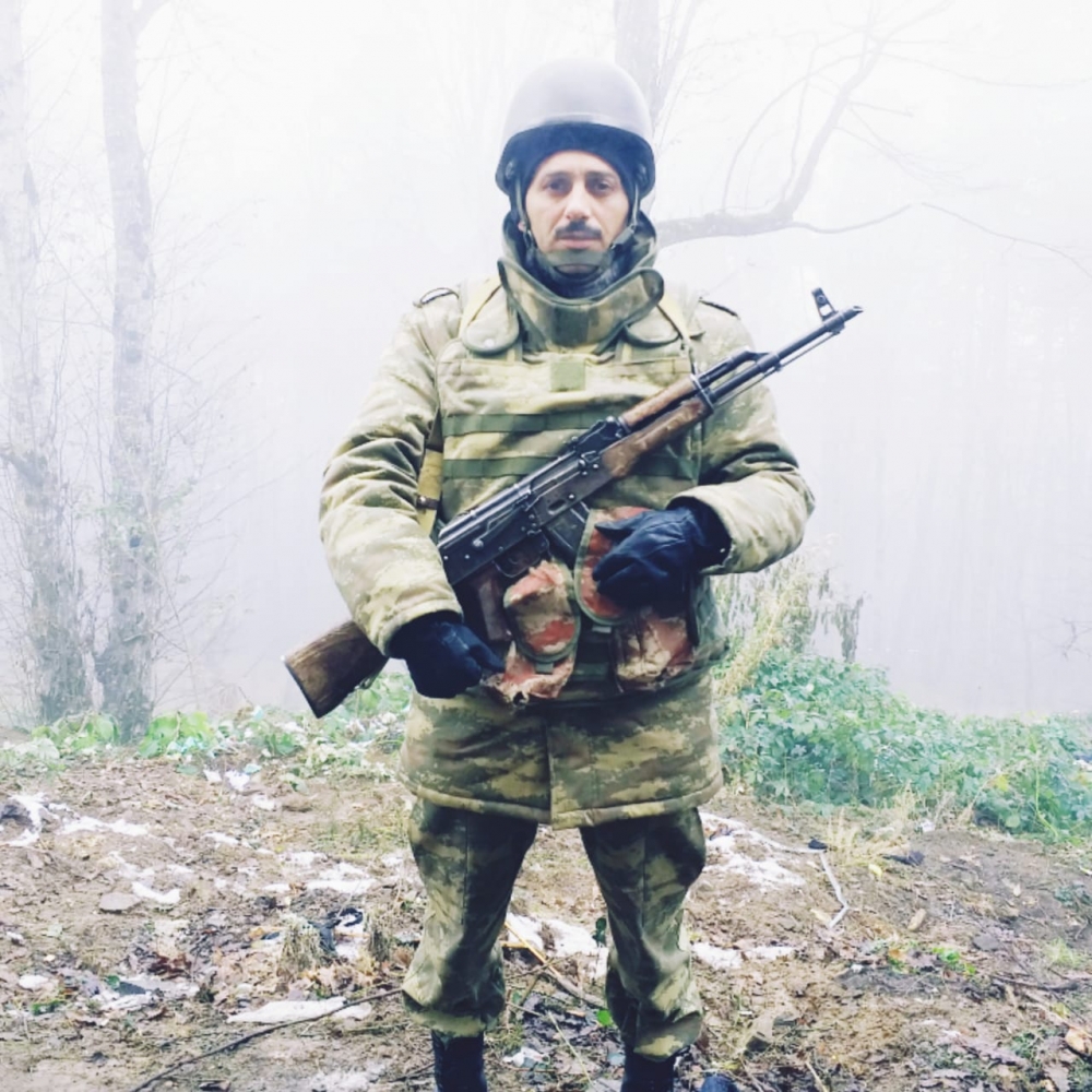Müsahibimiz şəhid olan müəlliminə olan borcunu ödəmək, qisası düşməndən almaq üçün Vətən müharibəsi başlayanda qələmi silaha dəyişərək ordu sıralarına könüllü yazılıb: “2004-cü ildə hərbi xidməti baş vurduğum gün bir gün müharibənin olacağına inanırdım. 2020-ci ilin sentyabrın 27-də inamım özünü doğrultdu. Müqəddəs torpaqlarımızım düşmən tapdağı altında qalması, Vətənimizin bütövlüyü uğrunda tökülən şəhid qanlarının qisasının alınmamsı mümkünsüz idi. Sentyabrın 21-də Səfərbərlik və Hərbi Xidmətə Çağırış üzrə Dövlət Xidmətindən ilk zəng gəldi. Daha sonra oktyabrın 15-də ikinci zəngdə müharibə üçün çağırdılar. Müharibə yoluma tağım komandiri vəzifəsində baş leytenant rütbəsi ilə Füzulinin Kürdmahmudlu kəndindən başladım. Daha sonra Qubadlı istiqamətindən, ardınca da Şuşanın azadlığı uğrunda gedən döyüşlərdə iştirak etdim. Müharibədən öncə də, indi də çalışdığım məktəb 1992-ci ildə Daşaltı əməliyyatında şəhid olmuş Azər Namazovun adını daşıyır. O, həm də mənim müəllimim olub. İkinci Qarabağ müharibəsində şəhid müəllimimin qisasını almaq mənə qismət oldu. Müəllimim Azər Namazovun şəhid olduğu Daşaltı kəndində düşmənə layiqli cavab verdim.”