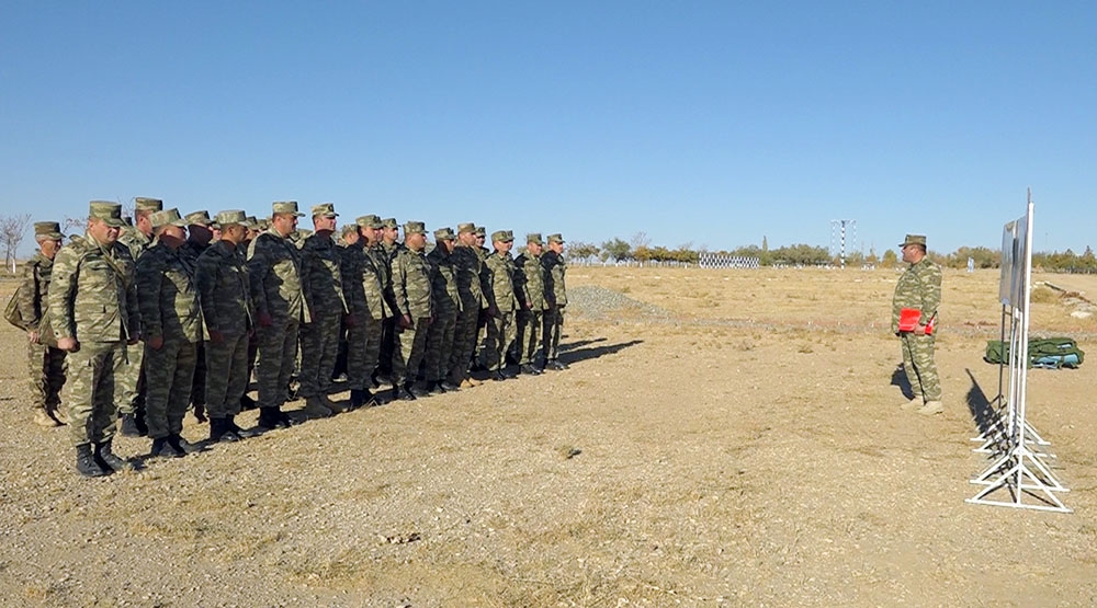 Səhra şəraitində təşkil edilmiş təlim yerlərində “Artilleriya divizonunun atış və atəşin idarə olunması”, “Kiçik ölçülü hava hədəflərinə qarşı mübarizə”, “Mövqelərin mühəndis cəhətdən hazırlanması” mövzularında məşğələlər keçirilib, atıcı silahlardan normativlərin yerinə yetirilməsi nümayiş olunub. Məşğələ zamanı minaatan batereyasının atışa hazırlanması və praktiki atış tapşırıqlarının yerinə yetirilməsi məşq etdirilib.