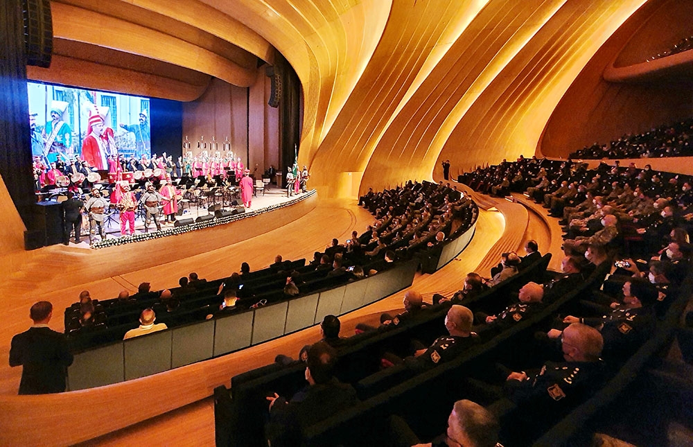 Ölkəmizdə səfərdə olan Türkiyə Respublikası Milli Müdafiə Nazirliyinin Mehteran Birliyi Heydər Əliyev Mərkəzində Zəfər Günü münasibətilə keçirilən konsertdə çıxış edib.