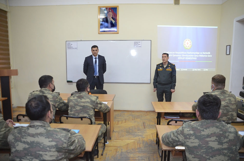 Müdafiə Nazirliyi Narkomanlığa və Narkotik Vasitələrin Qanunsuz Dövriyyəsinə Qarşı Mübarizə üzrə Dövlət Komissiyası ilə birgə Azərbaycan Ordusunun Təlim və Tədris Mərkəzində “Psixoaktiv maddələrdən istifadənin risk amilləri” mövzusunda seminar təşkil edib.
