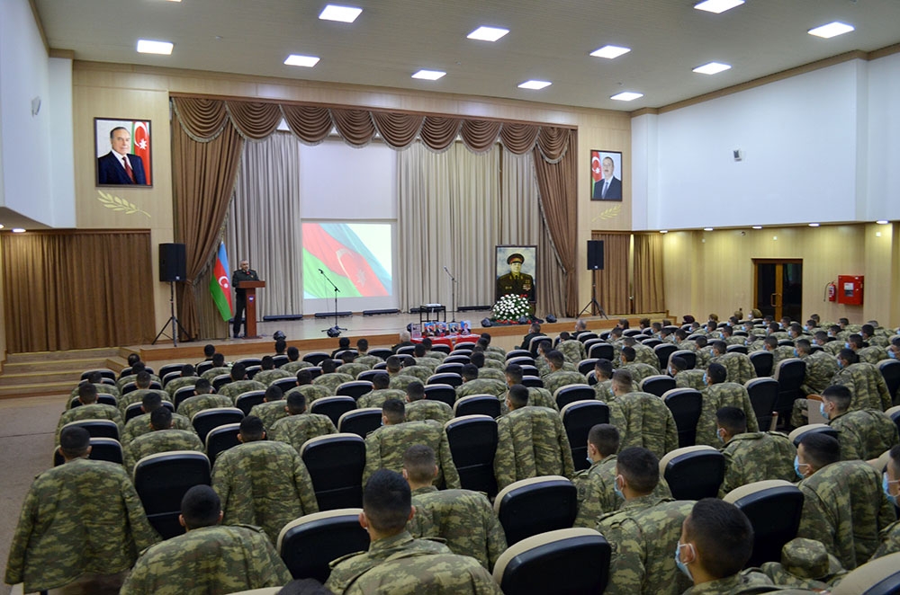Müdafiə Nazirliyindən "İki sahil"ə verilən məlumata görə, şəxsi heyətin və ictimaiyyət nümayəndələrinin də iştirak etdiyi tədbirlərdə əvvəlcə xalqımızın ümummilli lideri Heydər Əliyevin və respublikamızın suverenliyi, ərazi bütövlüyü uğrunda şəhid olan Vətən övladlarının xatirəsi bir dəqiqəlik sükutla yad edilib, Dövlət Himni səsləndirilib.