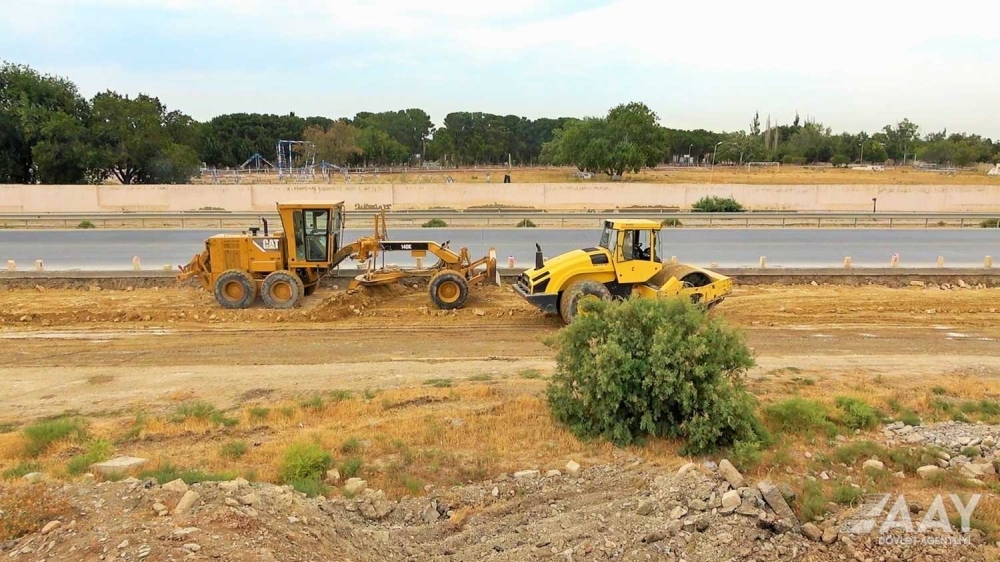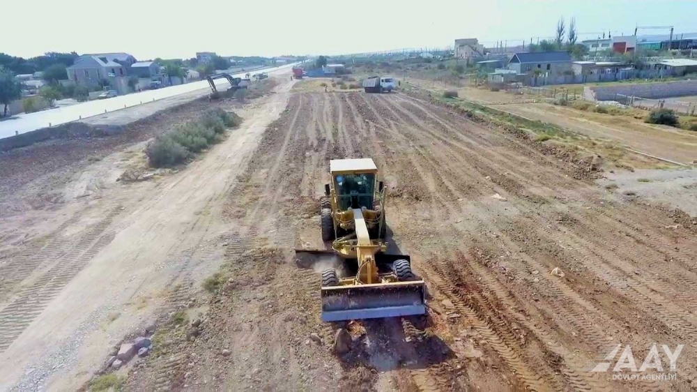 Artıq marşrut boyu mövcud örtüyün sökülməsi, torpaq yatağının təbii relyef səviyyəsinə qaldırılması və genişləndirilməsi, yeni torpaq yatağının inşası işləri sürətlə davam etdirilir.