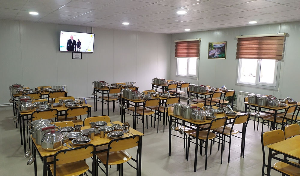 Müdafiə nazirinə məruzə olunub ki, modul tipli yerləşmə məntəqəsi hərbi qulluqçuların bütün zəruri ehtiyaclarını təmin etmək məqsədilə müasir avadanlıq, mebel və inventarlarla təchiz edilib. Burada silah otağı, yataqxana, yeməkxana, mətbəx, tibb məntəqəsi, ərzaq və əşya anbarları, hamam-sanitar qovşağı və fasiləsiz elektrik enerjisi ilə təmin edən generatorlar mövcuddur. Kompleks mərkəzləşdirilmiş istilik sistemi, işıq və su ilə təchiz edilib.