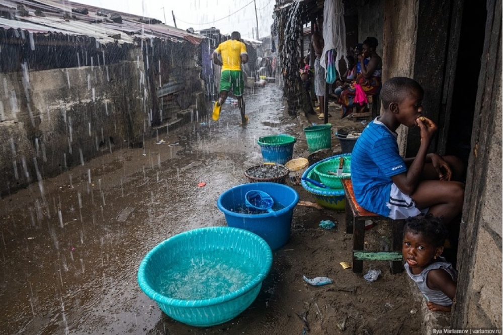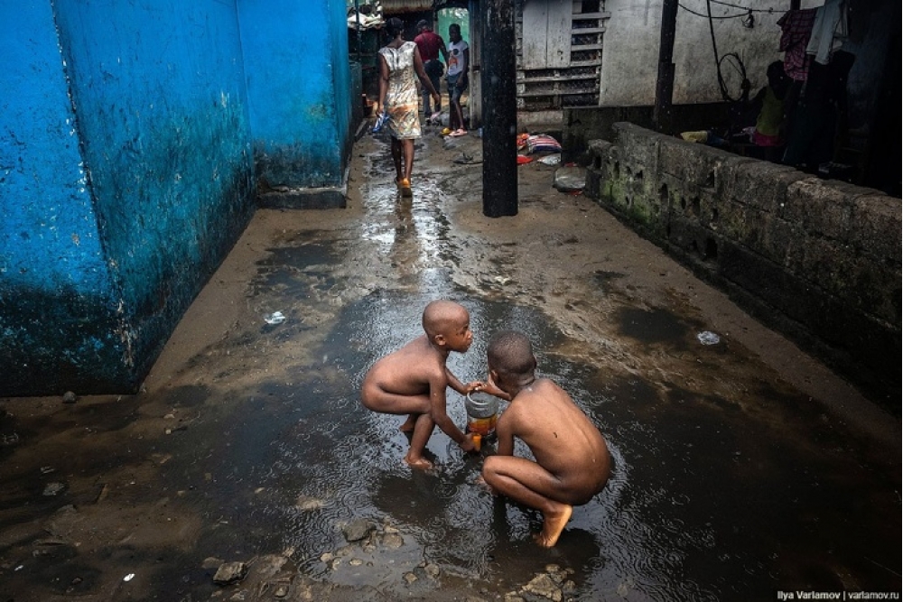 Yağış orada çimib təmizlənmək üçün bir fürsətdir! Uşaqlar bunu birbaşa çirkli küçələrdə edirlər, çünki əslində başqa heç bir yer yoxdur.