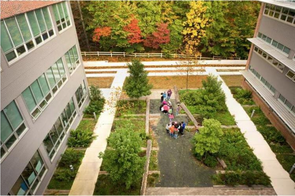 Bu məktəbin hər tərəfi yaşıllıqla örtülüdür. Binanın damı və bütün həyətyanı sahələr belə yaşıl otla örtülüb. Tozlu siniflərdə oturmağın zərərli olduğu və tələbələrin mümkün qədər təmiz havada dərs öyrənməsinə üstünlük verilir. İsti havalarda sinifdəki şagirdlər otların üstündə dərs keçirlər.