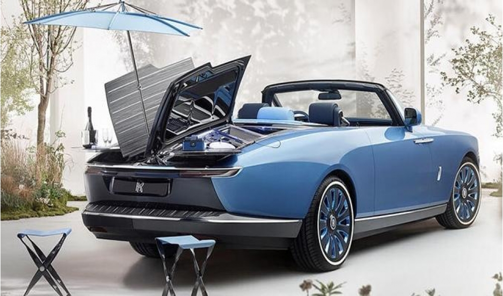 Avtomobilin arxa hissəsində nahar dəsti, soyuducu, fırlanan kokteyl masaları, açılan stullar və çətir var. Uzunluğu 5,8 metrdən az olan nəqliyyat vasitəsi dörd oturacaqlı və iki qapılıdır. Bahalı olmasına səbəbi dünyada hazırda mövcud olan üç belə kabrioletdən biri olmasıdır. 1813 unikal hissədən ibarət avtomobil dörd il ərzində dizayn edilib.