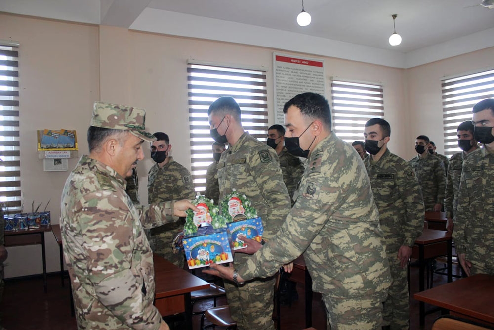 Sonda hərbi qulluqçulara bayram sovqatları təqdim edilib və hərbi xidmətdə fərqlənənlər təltif olunub.