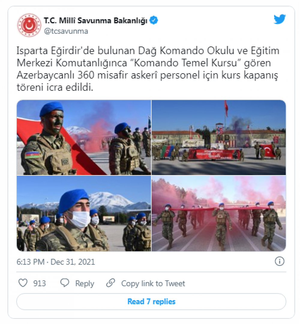 "İki sahil" xəbər verir ki, bu barədə Türkiyə Müdafiə Nazirliyi tviter səhifəsində məlumat yayıb.