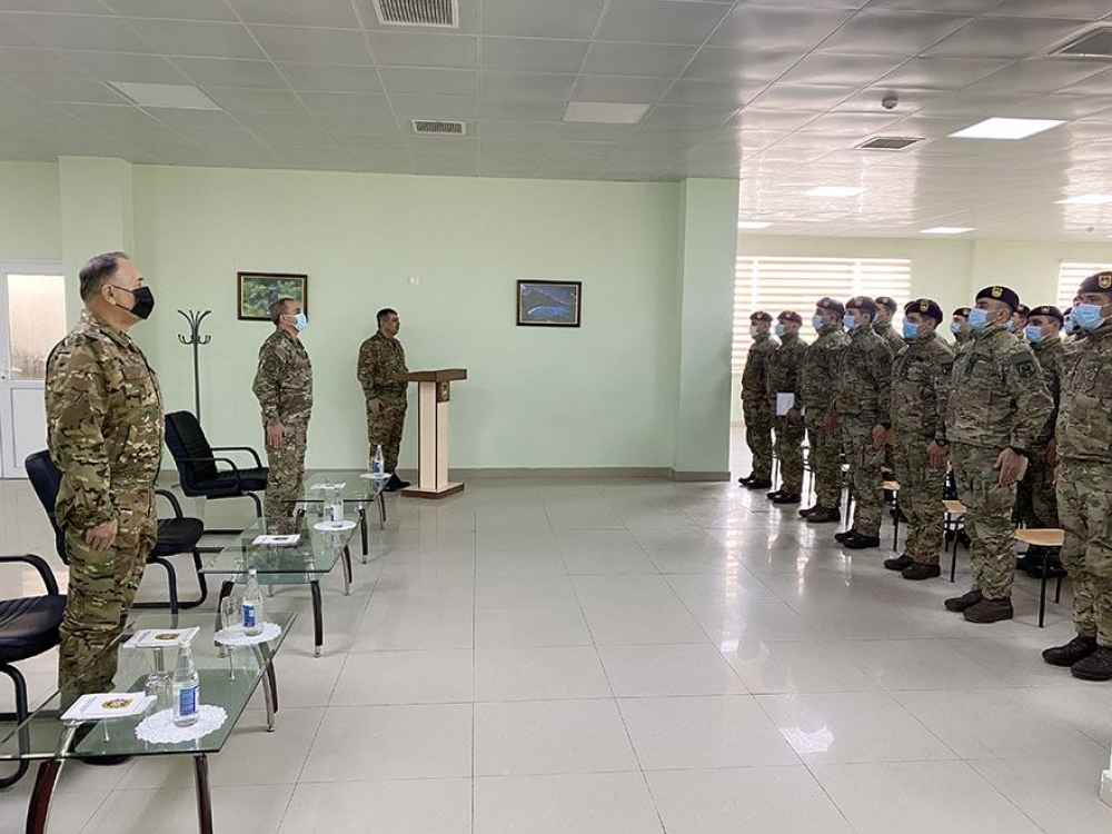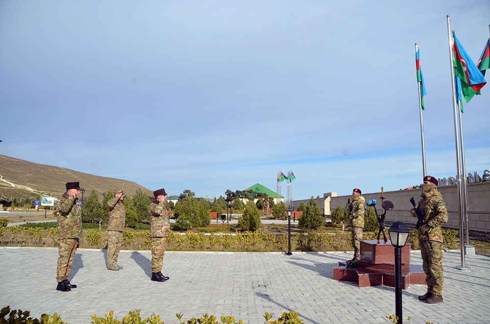 Əvvəlcə ümummilli lider Heydər Əliyevin hərbi hissənin ərazisindəki büstü və şəhidlərimizin xatirəsinə ucaldılmış abidə önünə gül dəstələri qoyulub.