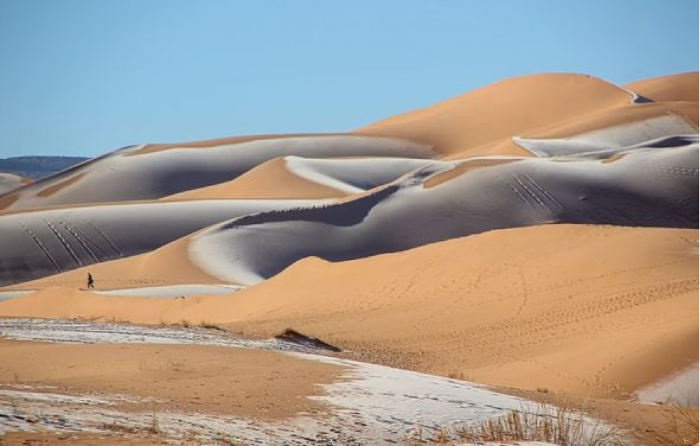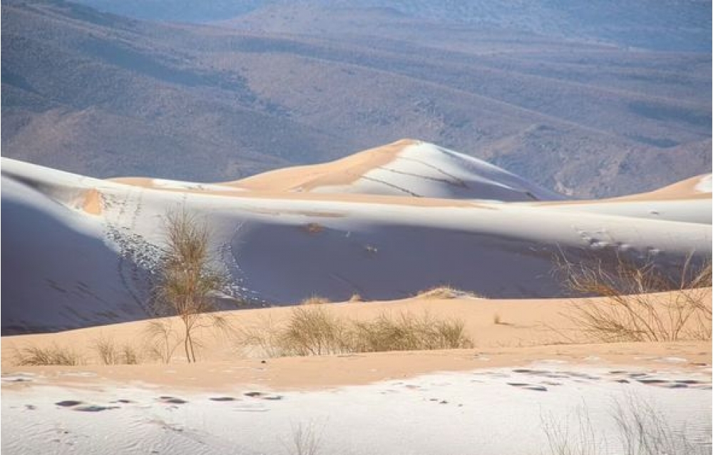Əlcəzairin şimal-qərbində yerləşən Sahara səhrasına və yaxınlığındakı yaşayış məntəqələrinə qar yağıb.