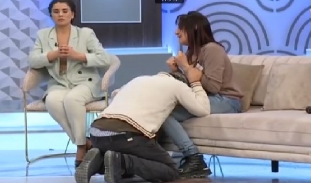 Verilişin eksperti olan Şəfiqə Nağıyeva həyat yoldaşının ayaqlarına qapanan kişiyə, “Dur ayağa, artistlik eləmə” deməsi diqqət çəkib.