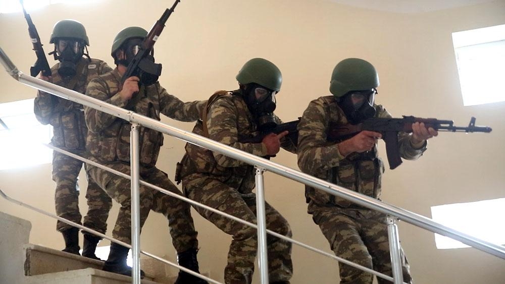 Təlim-məşqlərin senarisinə uyğun olaraq yaşayış məntəqələrində axtarış və aşkar olunan kəşfiyyat-diversiya qruplarının zərərsizləşdirilməsi üzrə döyüş tapşırıqları da icra olunub.