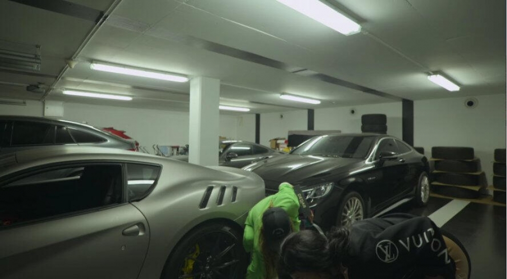 Qarajın digər tərəfində 1.8 milyon avroluq "Bugatti Veyron", 240 min avroluq ağ "Mercedes-Benz S65 AMG", 264 min avroluq bir narıncı "McLaren MP4-1"-i , 324 min avroluq bir "Lamborghini Aventador" və 720 min avro dəyərində böyük bir "Gelandewagen" yerləşir.