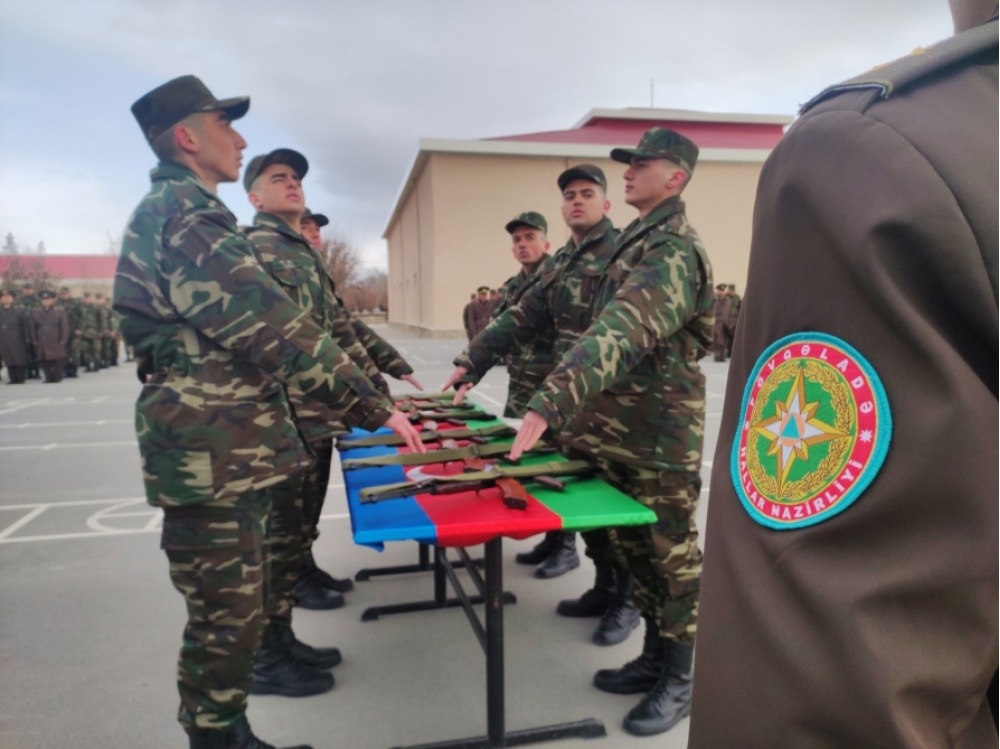 Hərbi andı qəbul edən gənc əsgərlər ölkəmizin suverenliyini, ərazi bütövlüyünü, müstəqilliyini qanları və canları bahasına qoruyacaqlarına, Vətənimizə, xalqımıza layiqli əsgər olacaqlarına söz veriblər.