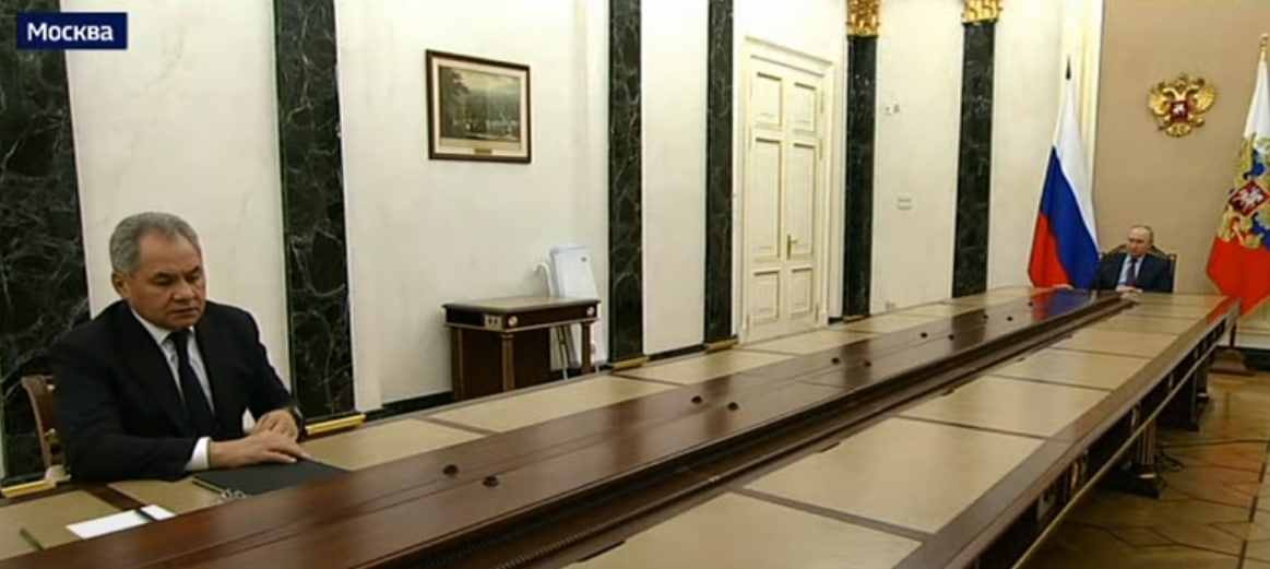 Belə ki, Putin və nazirlərin görüşü zamanı növbəti dəfə uzun ölçülü masadan istifadə olunub.