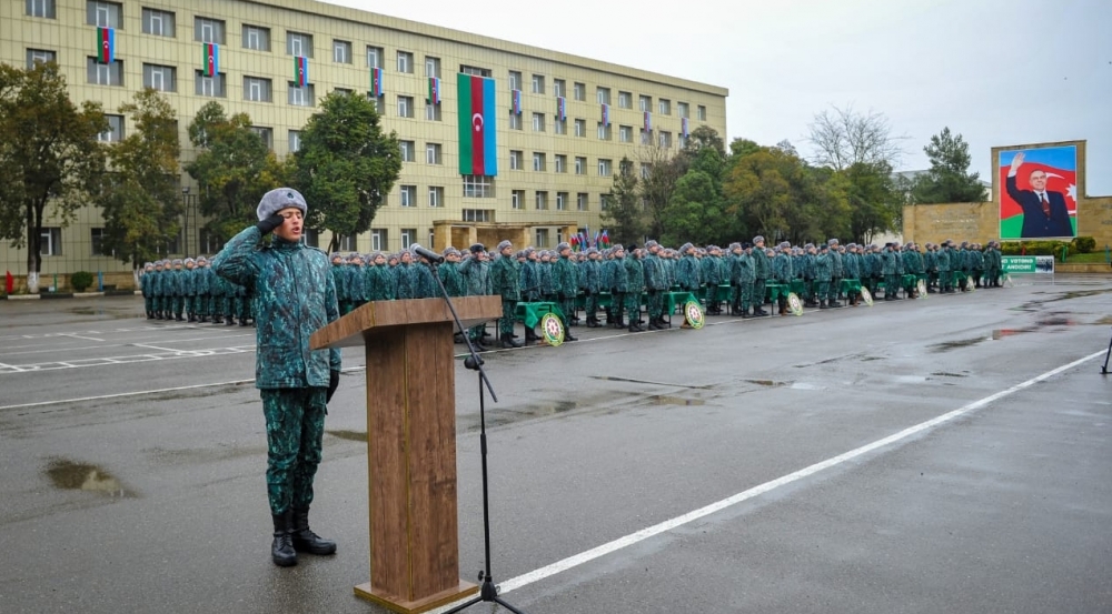 Tədbirdə Vətənə, dövlətə sədaqət andı içərək müqəddəs sərhədlərimizi şərəflə qorumaq məsuliyyətini öz üzərinə götürən gənc əsgərlərin hərbi anda daim sadiq qalacaqlarına əminlik bildirilərək onlara müvəffəqiyyətlər arzulanıb.