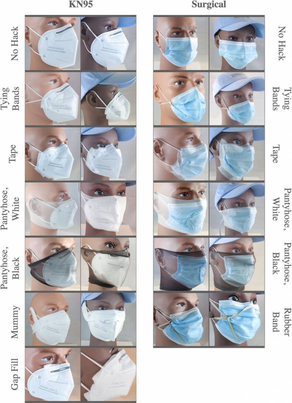 Tədqiqat çərçivəsində qulaqlıqların lentlə düyünlənməsi, rezin bantlardan istifadə edilməsi, kənarlarda yaranan boşluqların müxtəlif materiallarla bağlanması, maskanın qadın corabları və ya üzü örtən parça ilə istifadəsi kimi üsullar araşdırılıb.