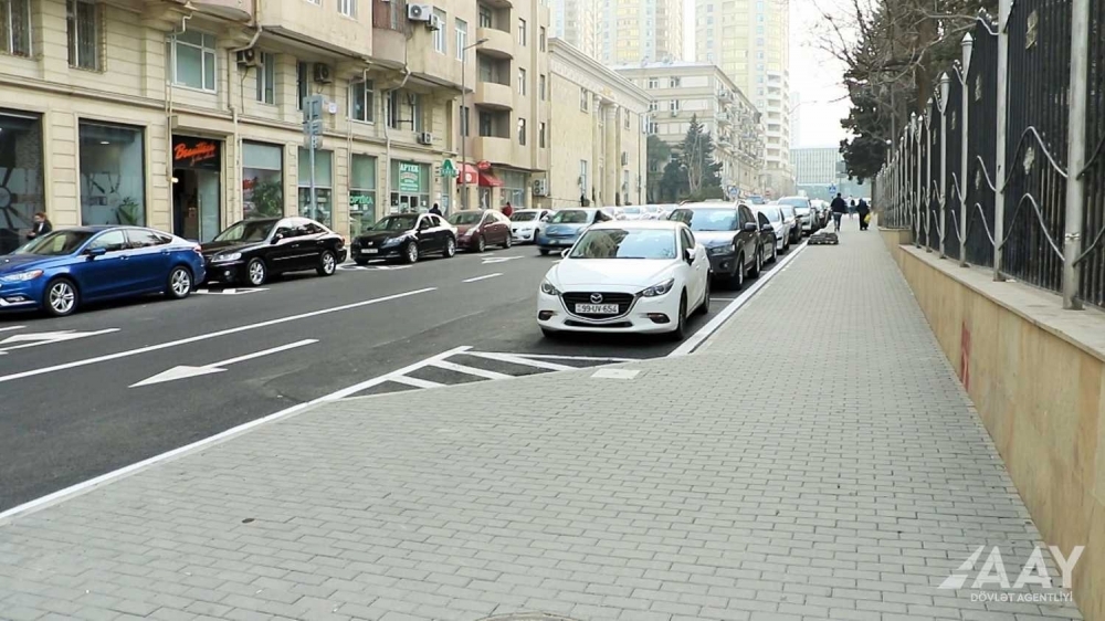 Əsaslı təmir zamanı yararsız səki daşları sökülərək 1580 p/metr uzunluğunda yeni beton və mərmər səki daşları ilə əvəz edilib, 130 p/metr bardür bərpa olunub, 4731 kv.metr sahədə isə yeni piyada səkiləri yaradılıb, həmçinin zəruri yerlərdə xüsusi qabarıq formalı eyni səviyyəli piyada keçidləri təşkil edilib. Sadalanan işlər küçə boyu piyadaların rahat və təhlükəsiz hərəkətini təmin edib.