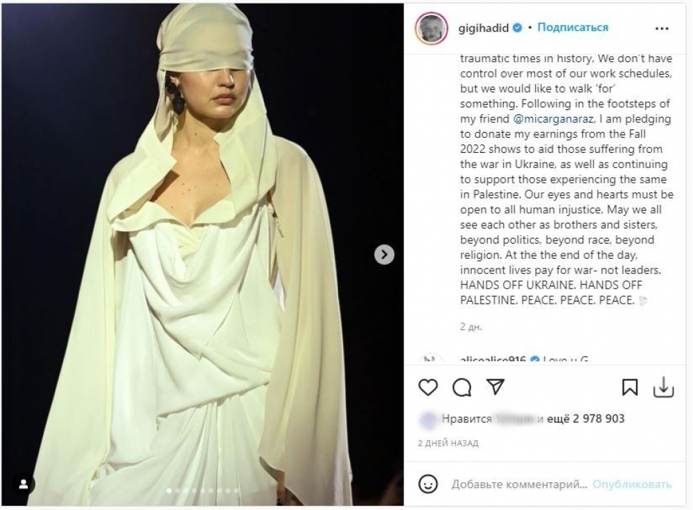 Jurnalın bu cür addım atması isə daha sonra fələstinlilərin təzyiqləri ilə qarşılaşmasına səbəb olub. Çünki mətndən Fələstinin çıxarılması Cici Hadidin nəzərdə tutduğu ianələri yalnız Ukraynaya bağışladığı kimi anlaşılıb ki, bu isə doğru deyil.