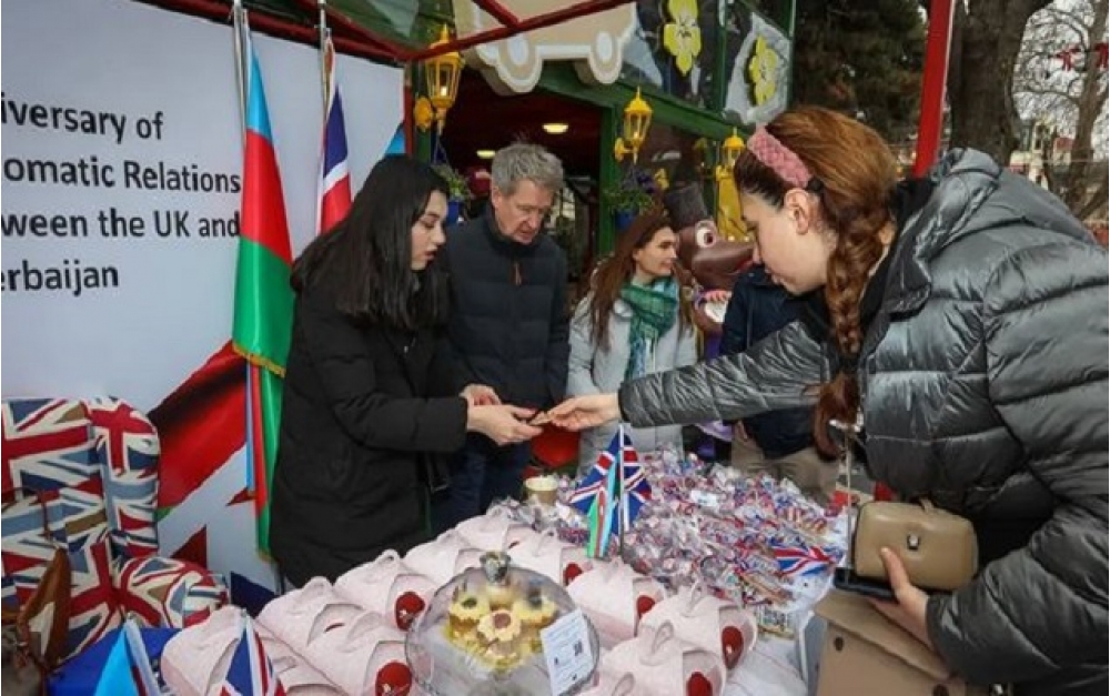 Böyük Britaniyanın Azərbaycandakı səfiri Ceyms Şarp Bakıda keçirilən Novruz yarmarkasında şirniyyat satıb.