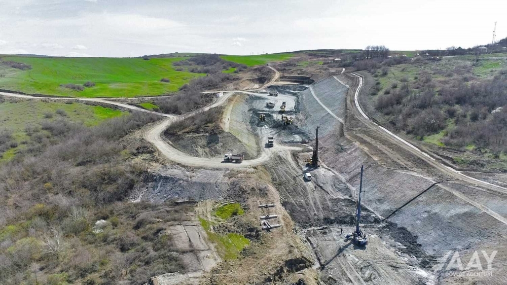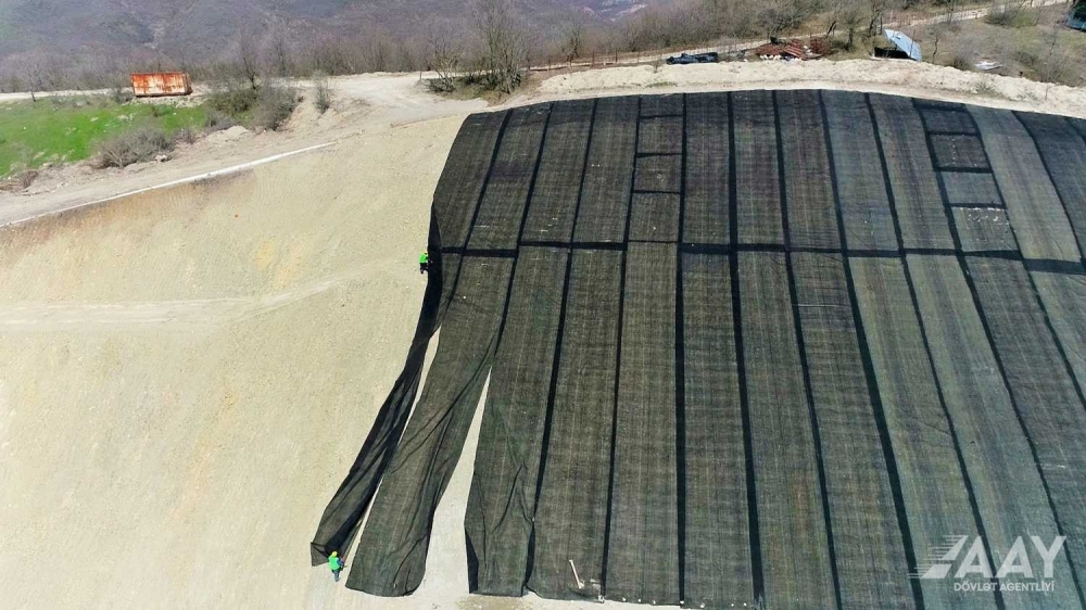 Sözügedən ərazidə mövcud qruntun qazılaraq layihə səviyyəsinə endirilməsi üçün işlər aparılıb, yamacların eroziyadan mühafizəsi üçün bərkitmə işləri görülür. Bunun üçün yamaclara xüsusi material sərilir, yaşıllıqların yaradılması üçün üzərinə lazımi qalınlıqda münbit torpaq qatı verilir.
