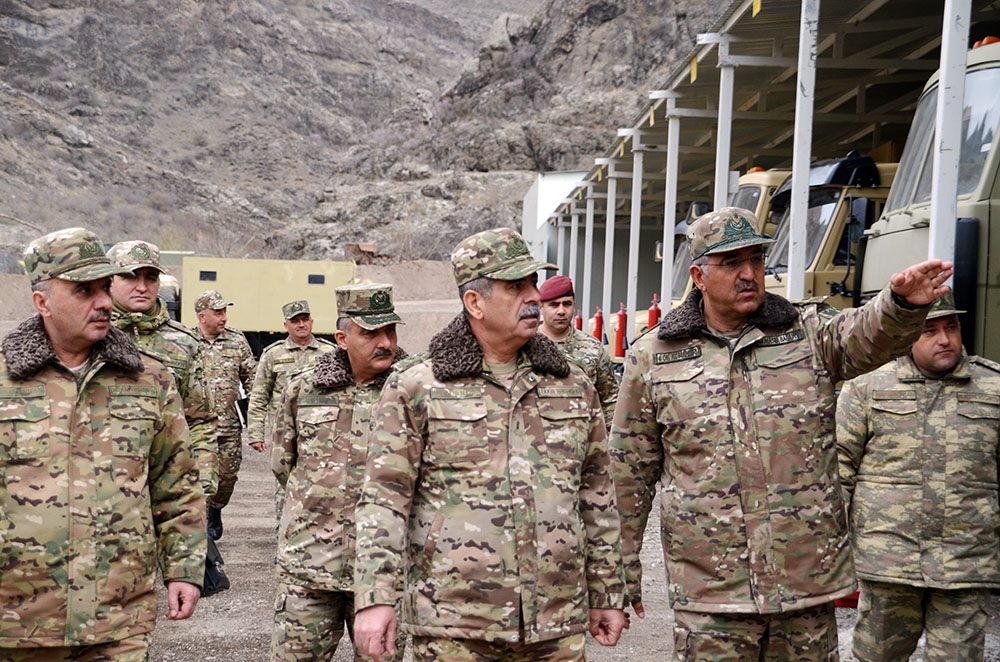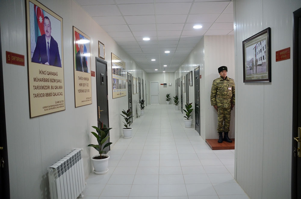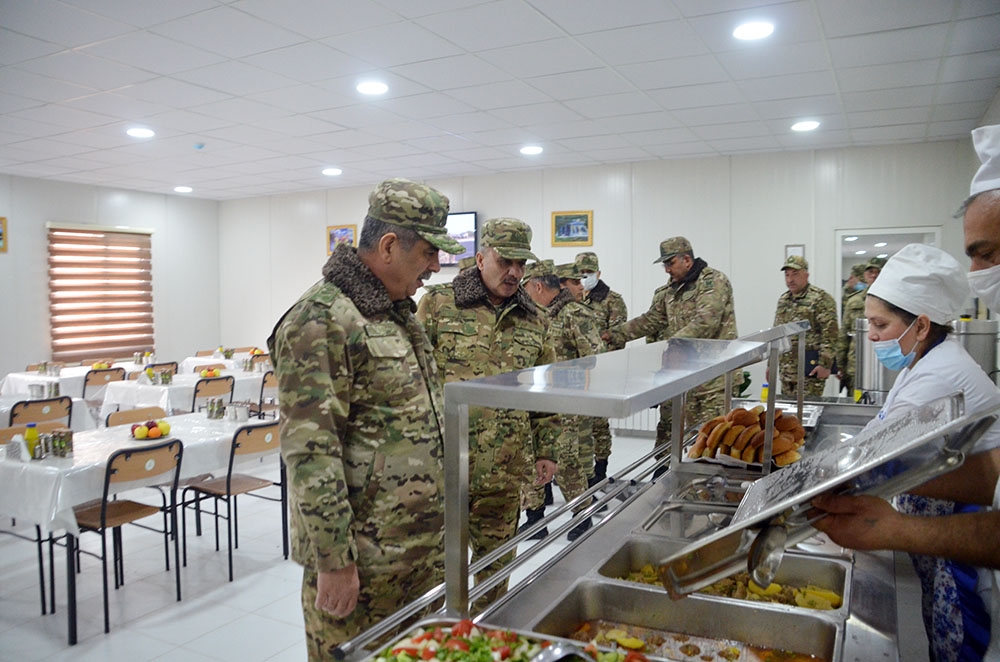 Sonra nazir Kəlbəcər və Laçın rayonlarında yeni istifadəyə verilmiş hərbi obyektlərə baxış keçirib. Məruzə olunub ki, müasir tələblər nəzərə alınmaqla yeni inşa edilmiş hərbi infrastrukturlarda şəxsi heyət üçün lazımi şərait yaradılıb. Binalar bütün zəruri ehtiyacları təmin etmək məqsədilə müasir avadanlıq, mebel və inventarlarla təchiz edilib. Burada silah otağı, yataqxana, yeməkxana, mətbəx, tibb məntəqəsi, ərzaq və əşya anbarları, hamam-sanitar qovşağı və ərazini fasiləsiz elektrik enerjisi ilə təmin edən generatorlar mövcuddur.