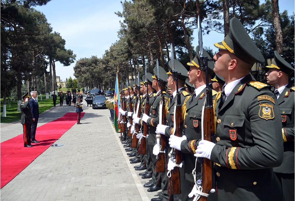 Sonra Müdafiə Nazirliyində rəsmi qarşılanma mərəsimi keçirilib. Latviyanın müdafiə naziri fəxri qarovulun önündən keçdikdən sonra hər iki ölkənin dövlət himnləri səsləndirilib. A.Pabriks “Şərəf kitabı”nı imzalayıb.