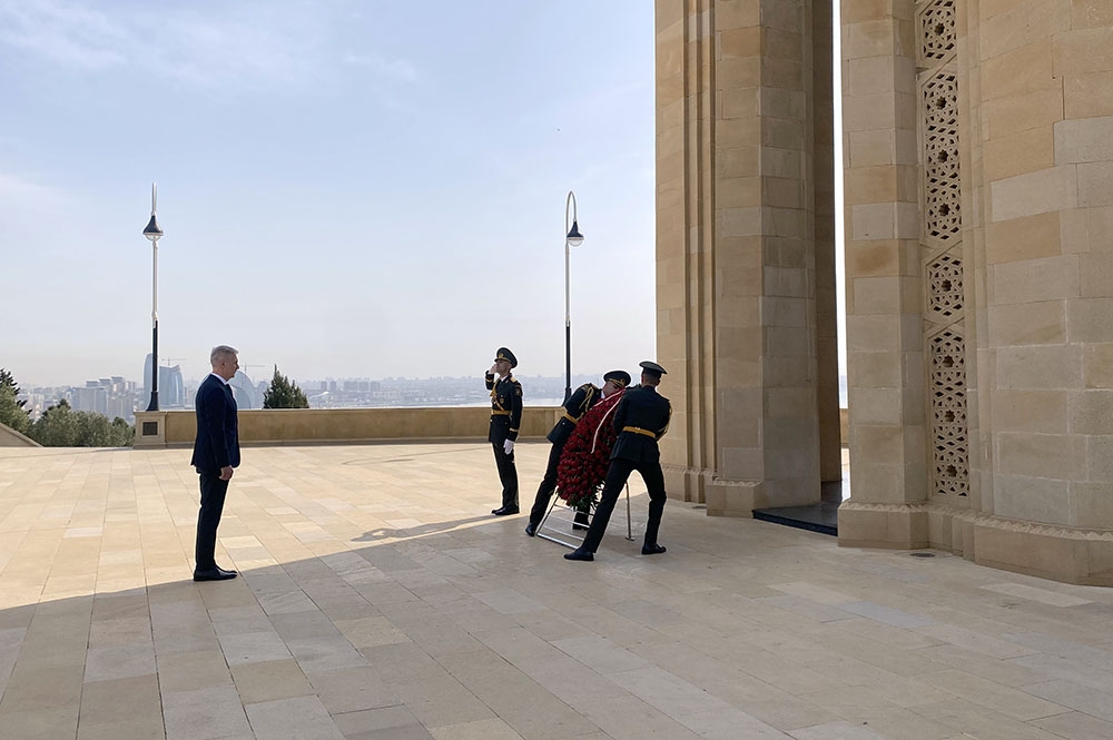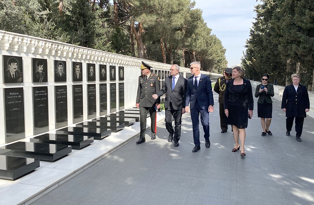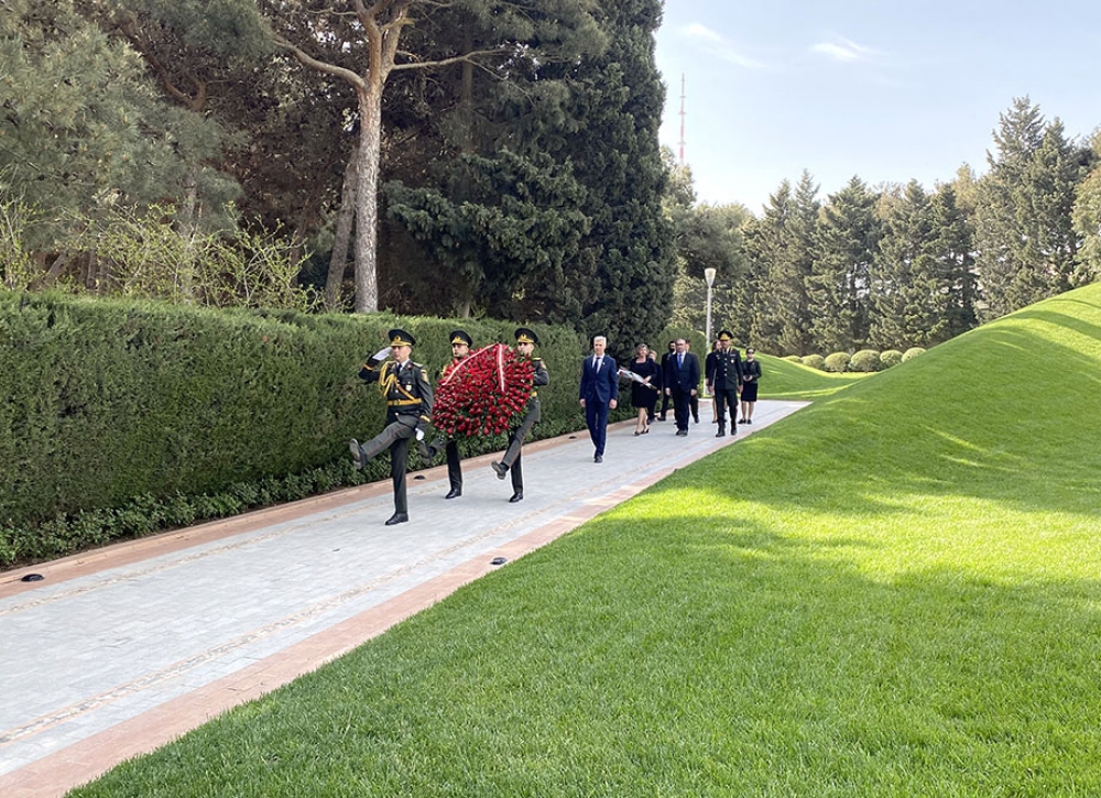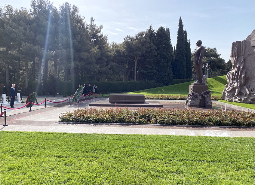 “İki sahil” xəbər verir ki, nümayəndə heyəti əvvəlcə Fəxri xiyabanda ümummilli lider Heydər Əliyevin və görkəmli oftalmoloq-alim, akademik Zərifə xanım Əliyevanın, Şəhidlər xiyabanında ölkəmizin müstəqilliyi, ərazi bütövlüyü uğrunda şəhid olmuş vətəndaşlarımızın məzarlarını ziyarət edərək əklil və gül dəstələri qoyub.