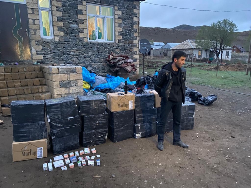 Məhkəmənin qərarı əsasında Yardımlı rayon polis əməkdaşları ilə birgə həmin şəxsin evində keçirilmiş baxış zamanı zirzəmidə 8610 qutu (7910 “KENT” və 700 “Marlboro” markalı) siqaretlər, 1 ədəd gecə görmə cihazı və müxtəlif dərman preparatları aşkar olunaraq götürülmüşdür.
