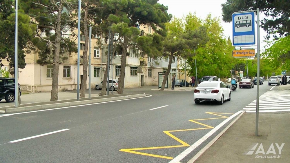 Daha sonra avtonəqliyyat vasitələrinin normal hərəkətinin təmin edilməsi üçün üfüqi nişanlanma xətlərinin çəkilişi işləri aparılıb, zəruri yerlərdə yol nişanları quraşdırılıb, mümkün ərazilərdə parkinq yerləri təşkil edilib və yeraltı kommunikasiya xətlərinin baxış qapaqlarının layihə hündürlüyünə qaldırılması işləri icra olunub. Yaxın günlərdə piyada zolaqları çəkilməklə küçə müasir görkəmdə tam olaraq vətəndaşların istifadəsinə veriləcək.