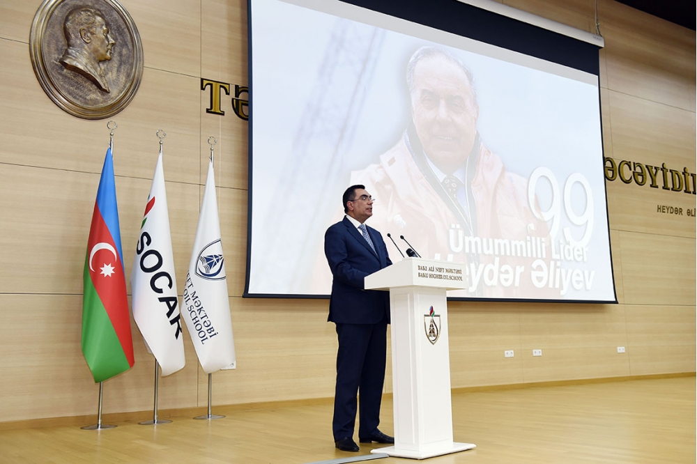 O, həmçinin çıxışında Azərbaycan neftçilərinin daim ulu öndər Heydər Əliyevin xüsusi diqqət və qayğısı ilə əhatə olunduqlarını bildirib. Qeyd edib ki, Ümummilli Lider Azərbaycanda neft sahəsində peşəkar kadrların formalaşmasını daim diqqət mərkəzində saxlayıb və bu istiqamətdə zəruri addımlar atıb.