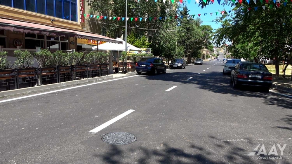 Daha sonra avtonəqliyyat vasitələrinin normal hərəkətinin təmin edilməsi üçün üfüqi nişanlanma xətlərinin çəkilişi işləri aparılıb, zəruri yerlərdə yol nişanları quraşdırılıb, yeraltı kommunikasiya xətlərinin baxış qapaqlarının layihə hündürlüyünə qaldırılması, yeni yağış barmaqlıqlarının quraşdırılması işləri icra olunmaqla küçə müasir görkəmdə vətəndaşların istifadəsinə verilib.