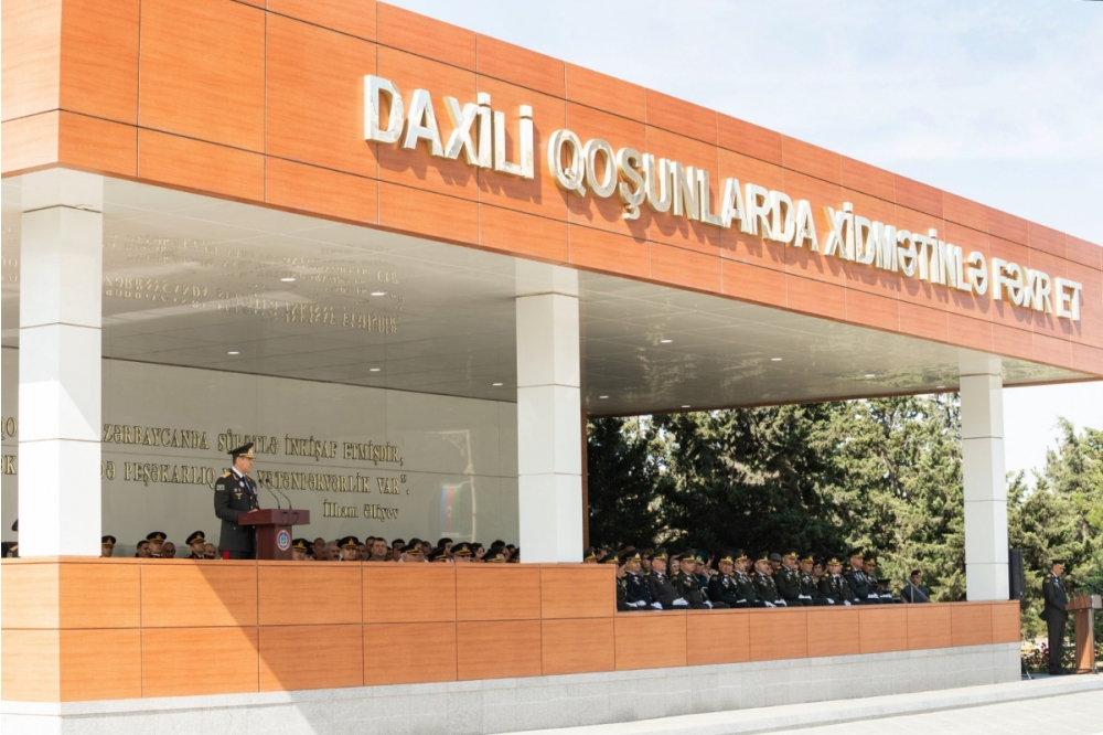 Gənc zabitlər önündə çıxış edən nazir Vilayət Eyvazov məmnunluqla bildirib ki, Azərbaycan Respublikasının Prezidenti, Silahlı Qüvvələrin Ali Baş Komandanı cənab İlham Əliyev Qoşunların döyüş hazırlığının yüksəldilməsini daim nəzarətdə saxlayıb, müasir silah və texnika ilə təminatı, şəxsi heyətinin sosial müdafiəsinin gücləndirilməsi sahəsində bir çox vacib qərarlar qəbul edib. Məhz bu ali diqqətin nəticəsidir ki, Daxili Qoşunlar qarşıya qoyulan xidməti-döyüş tapşırıqlarını yüksək səviyyədə yerinə yetirməyə qadir silahlı birləşməyə çevrilib.