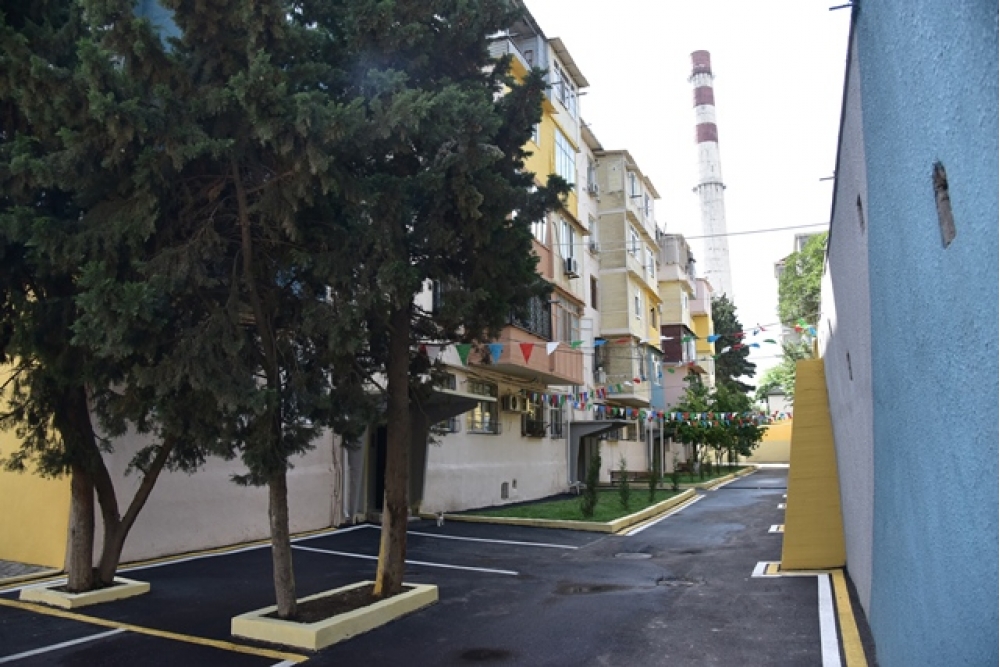 Hazırlanmış layihəyə uyğun olaraq 500 nəfərdən çox sakini olan 4 girişli, 5 mərtəbəli yaşayış binasının fasadı və dam örtüyü əsaslı təmir olunub, binanın giriş qapıları və pilləkən qəfəslərinin pəncərələri dəyişdirilib, yeni yağış suları axıdan navalça və borular quraşdırılıb.