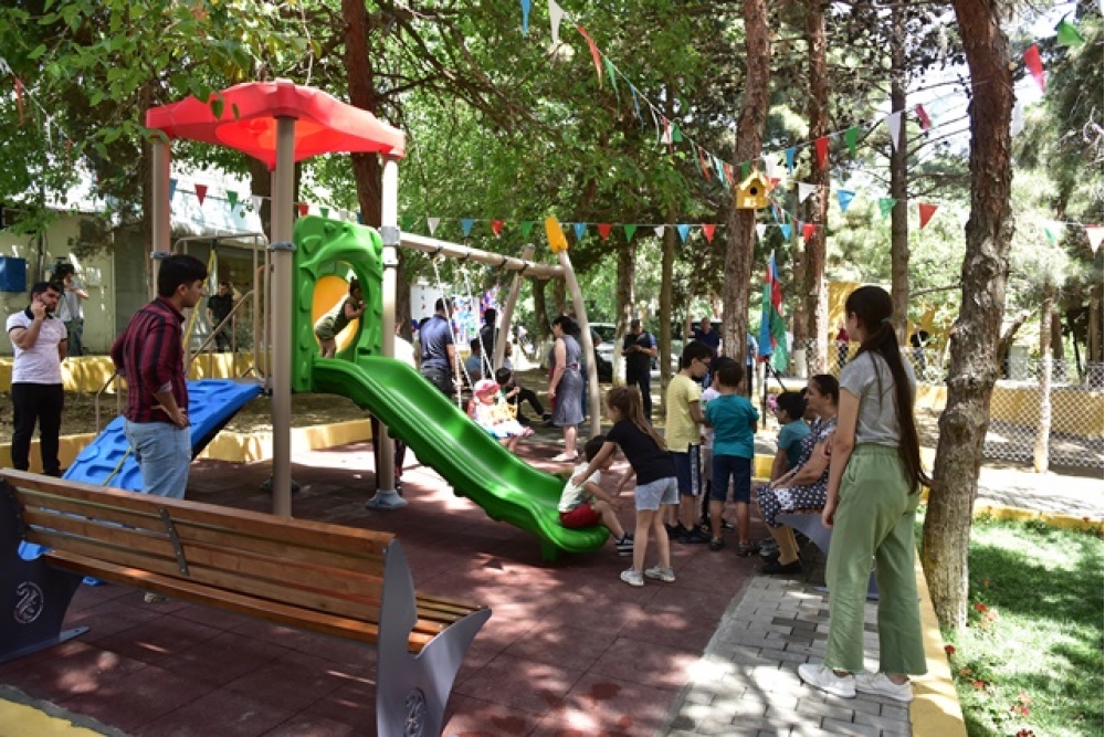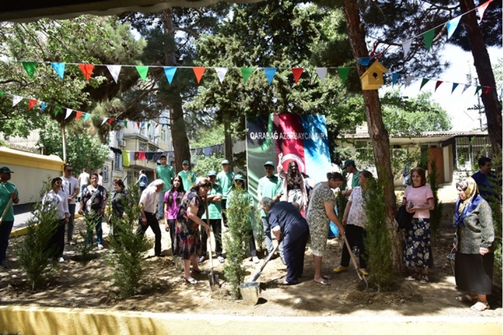 Nəsimi rayonunda 15 İyun - Milli Qurtuluş Günü münasibətilə keçirilən silsilə tədbirlər çərçivəsində həyətlərdə və məhəllələrdə genişmiqyaslı abadlıq, quruculuq və yaşıllaşdırma işləri aparılır.
